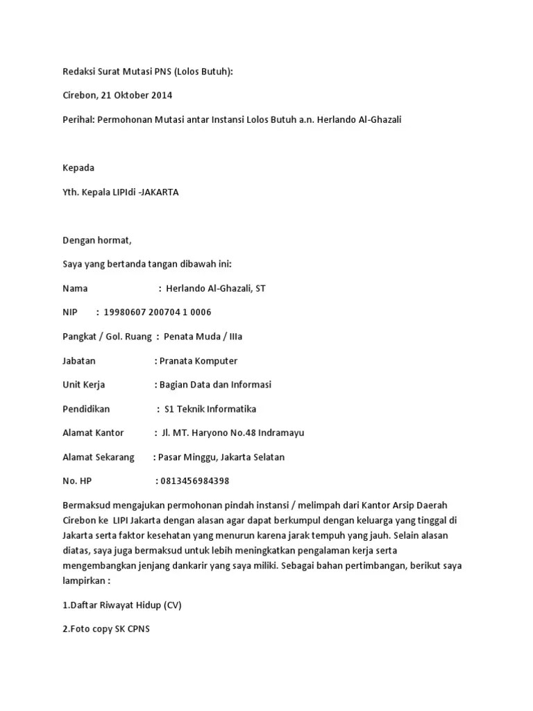 Dari hari ke hari semakin banyak pengunjung blogku yang mengirimkan email kepada saya untuk mengirimkan contoh redaksi surat pengajuan . Response dari instansi tujuan mutasi adalah bersedia menerima permohonan kita atau menolaknya. Pns (tuliskan nama instansi dan bagiannya) alamat kantor. 1) surat permohonan pindah dari pemohon atau surat penawaran dari pemerintah propinsi diy kepada bupati sleman;. Asli surat pernyataan lolos butuh dari ppk instansi.